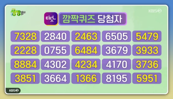 보통 출제되는 문제는 오늘 방송된 내용과 관련된 것이라서, 집중해서 시청하고 있으면 어렵지 않게 맞힐 수 있답니다. 단순히 프로그램을 보는 것에서 끝나는 게 아니라, 소소하게 경품의 기회까지 주어지니 꽤 매력적이지 않나요?