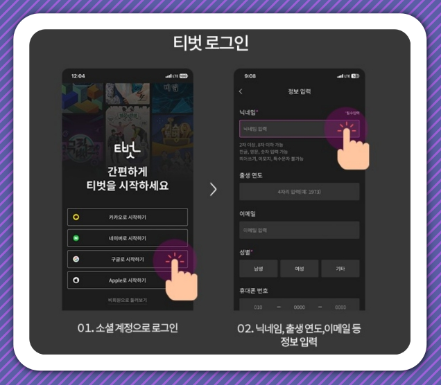 회원가입은 카카오, 네이버, 애플, 구글 아이디 등으로 간편하게 할 수 있어서 번거롭지 않아요. 저는 카카오 계정으로 1분 만에 끝냈습니다.