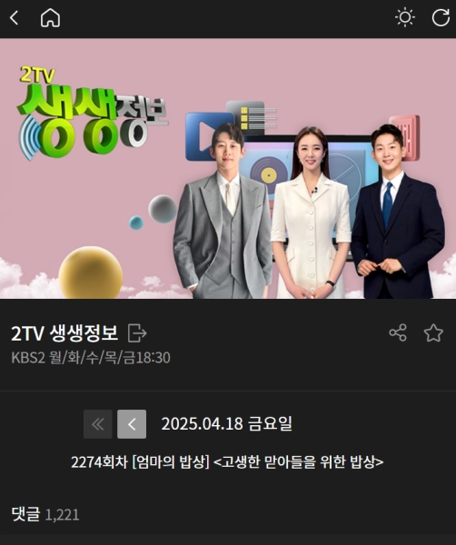 2tv 생생 정보 퀴즈 언제 나오나요?