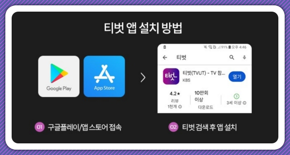 2tv 생생 정보 퀴즈에 참여하려면 먼저 KBS 공식 앱인 ‘티벗(TVUT)’을 설치해야 해요. 구글 플레이스토어나 앱스토어에서 ‘티벗’을 검색한 후 설치하고 간단한 회원가입을 마치면 준비 완료!