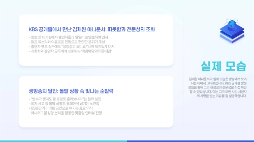 특히 기억에 남는 건, 갑작스러운 출연자 멘트 실수에도 김재원 아나운서가 “생방송의 묘미죠!”라며 재치 있게 넘기는 장면이었습니다. 그때 느꼈습니다. 이 분이 왜 ‘아침마당의 터줏대감’인지, 그리고 왜 오랜 시간 시청자들의 사랑을 받는지 말이죠.
