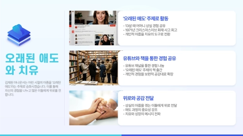 이 경험은 김재원 아나운서가 더욱 단단하고 따뜻한 사람이 되는 데 중요한 밑거름이 되었습니다. 최근에는 ‘오래된 애도’라는 주제로 유튜브와 책을 통해 자신의 경험을 솔직하게 나누며, 많은 이들에게 위로와 공감을 전하고 있습니다.