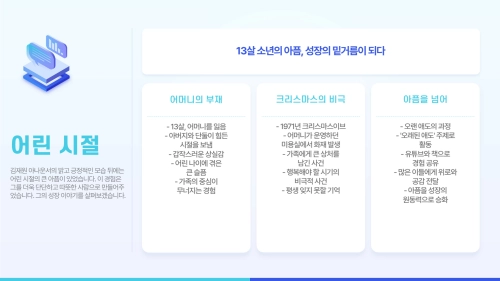 겉으로는 늘 밝고 긍정적인 김재원 아나운서. 하지만 어린 시절에는 큰 아픔이 있었습니다. 13살 때 어머니를 여의고, 아버지와 단둘이 힘든 시절을 보냈습니다. 1971년 크리스마스이브, 어머니가 운영하던 미용실에서 화재 사고가 발생해 가족에게 큰 상처를 남겼죠.