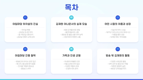 지금까지 김재원 아나운서는 단순히 방송을 진행하는 사람이 아닙니다. 자신의 아픔과 성장, 가족에 대한 사랑, 출연자와 시청자를 향한 배려, 그리고 인생의 균형을 실천하는 ‘따뜻한 영향력’을 가진 방송인입니다.