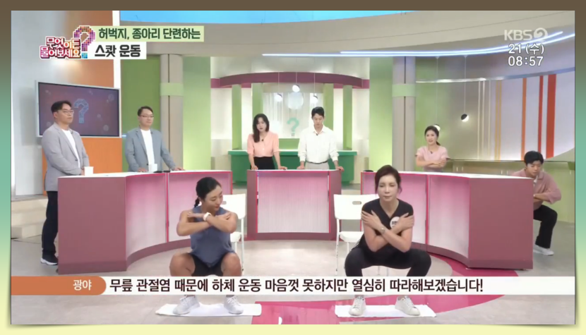 제가 시청한 날의 주제는 허벅지와 종아리 단련법에 대한 것이었습니다.
